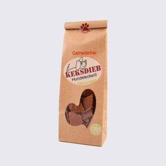Das Früchteknäcke von Keksdieb ist der perfekte vegetarische Snack für deinen Hund. In kleine Stücke zerbrochen, kann man es auch super als Leckerli benutzen.