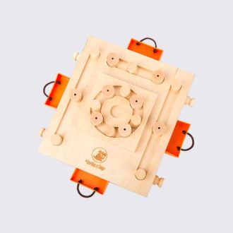 Dieses Spielzeug bietet viele Möglichkeiten, um Leckerli zu verstecken: 3 Holzscheiben und insgesamt 8 Spielsteine können je nach gewünschtem Schwierigkeitsgrad aufgebaut werden. Dabei werden verschiedene Bewegungsabläufe (Ziehen, Anheben) und motorische Fähigkeiten trainiert.