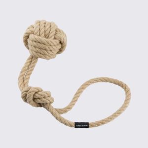 Das Tau-Spielzeug BOLLY von Treusinn ist ein super Spielzeug für aktive Hunde und eignet sich besonders gut für Apportierübungen sowie Zerrspiele. Der Wurfball liegt dank Handschlaufe gut in der Hand und lässt sich durch sein Eigengewicht einfach werfen. Da er im Wasser schwimmt, können ihn die Vierbeinern auch im kühlen Nass sehen und greifen. Das Spielzeug aus hochwertigem Segeltau wird in einer deutschen Werkstatt für Menschen mit Behinderungen handgefertigt.